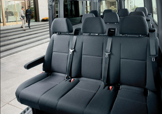 Vous souhaitez mener vos passagers à bon port tout en leur offrant confort et sécurité ? Alors, le Sprinter Combi est fait pour vous : pouvant accueillir jusqu'à 12 personnes, doté d'équipements innovants et d'un design moderne, son habitacle est très convivial dès le premier abord et ce, quel que soit son usage, service de navette hôtelière, taxi ou véhicule d'excursion.